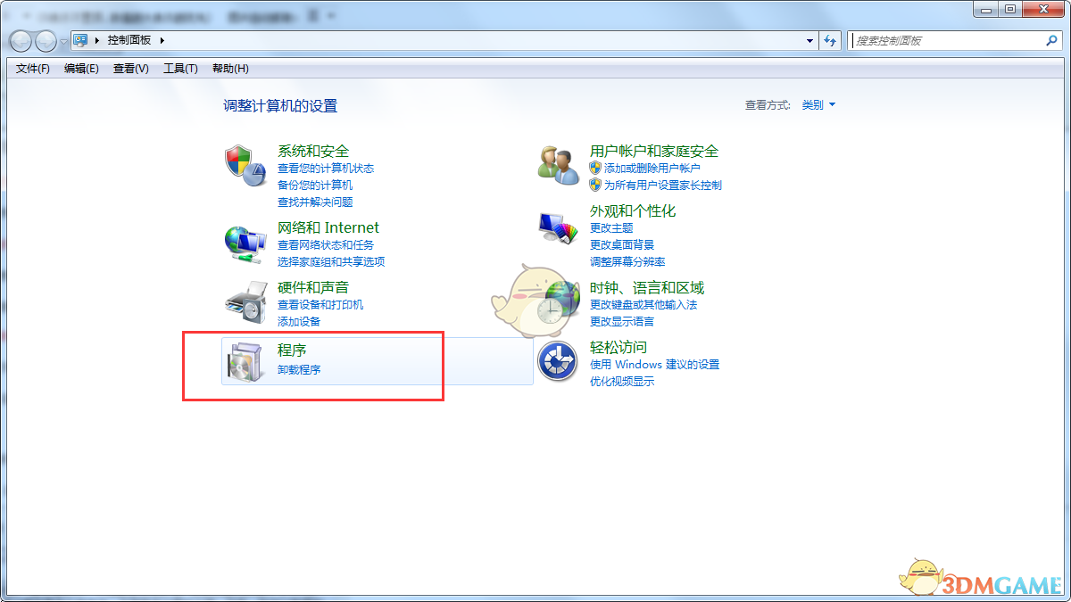 1、首先在“开始”中打开“控制面板”,并在控制面板中找到“卸载程序”,打开;