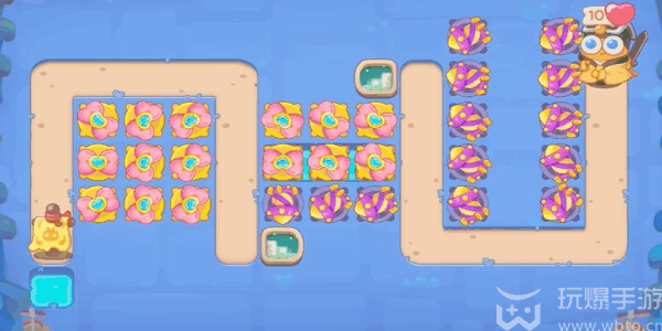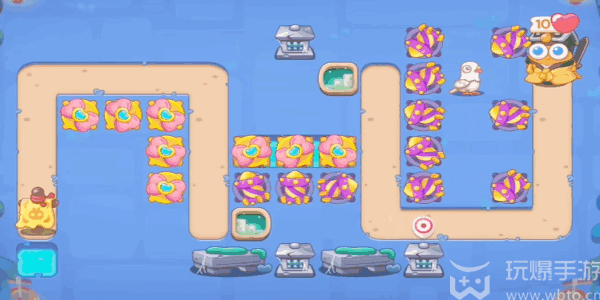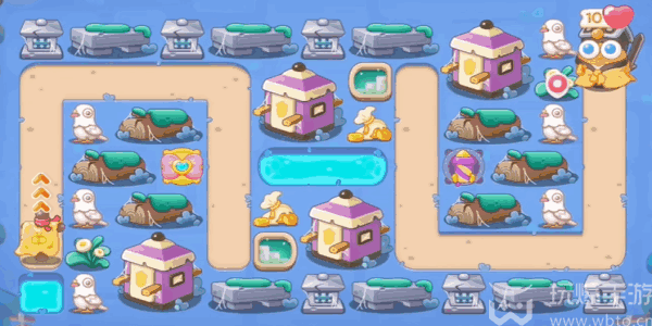 3、继续(continue)在河道(dao)上下的位(wei)置(zhi)建造(jianzao)道具,全部都升(sheng)级(ji)之后就(jiu)可(ke)以(yi)把障(zhang)碍物清理完了。