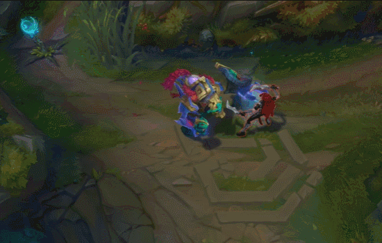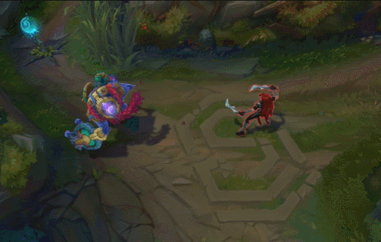 E:茂凯的E跟小树苗不一样,更像是一个小恶魔(mo),命中对手以后(yihou)身上单体的输出能力更强。
