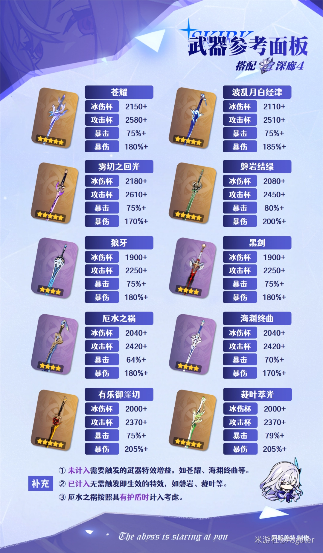 ③【厄水之祸】的普攻/重击的暴击&增伤提升能直接拉高该武器的表(biao)现(xian),甚至优于部分(bufen)5星武器,但仅在站场且有盾时選擇。
