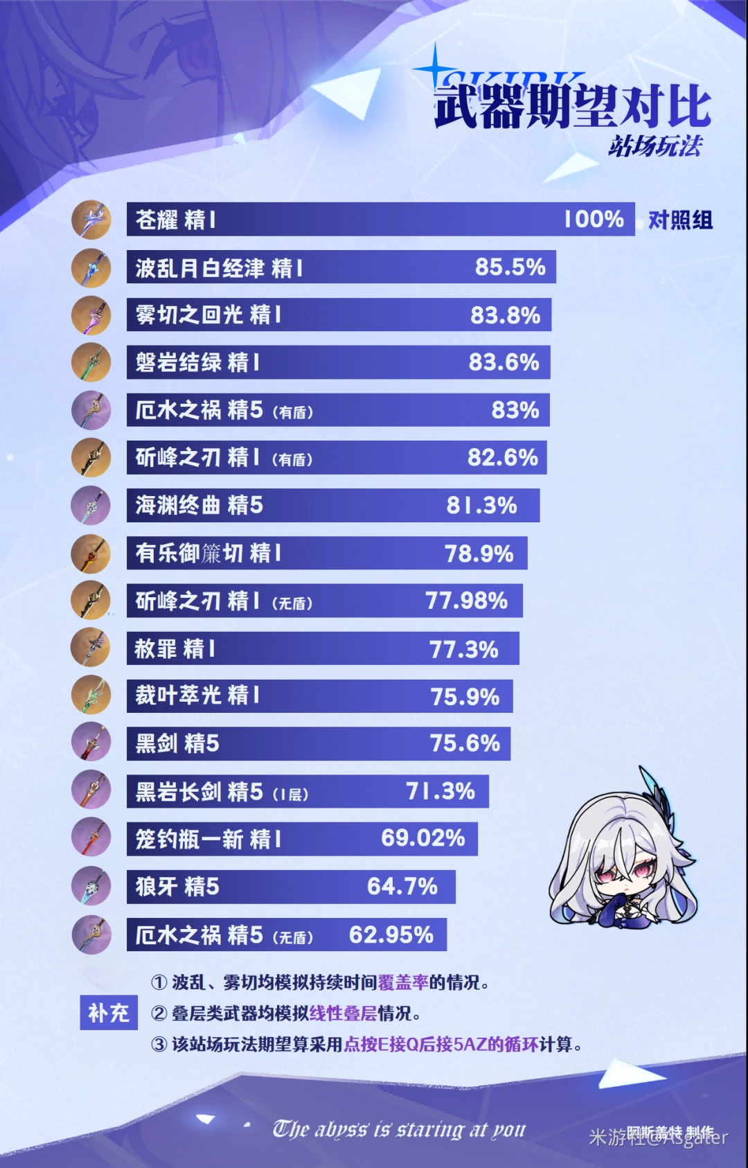*選擇顺序:苍耀>波乱(站场)>雾切/磐岩>有乐(站场)/斫峰/赦罪>裁叶