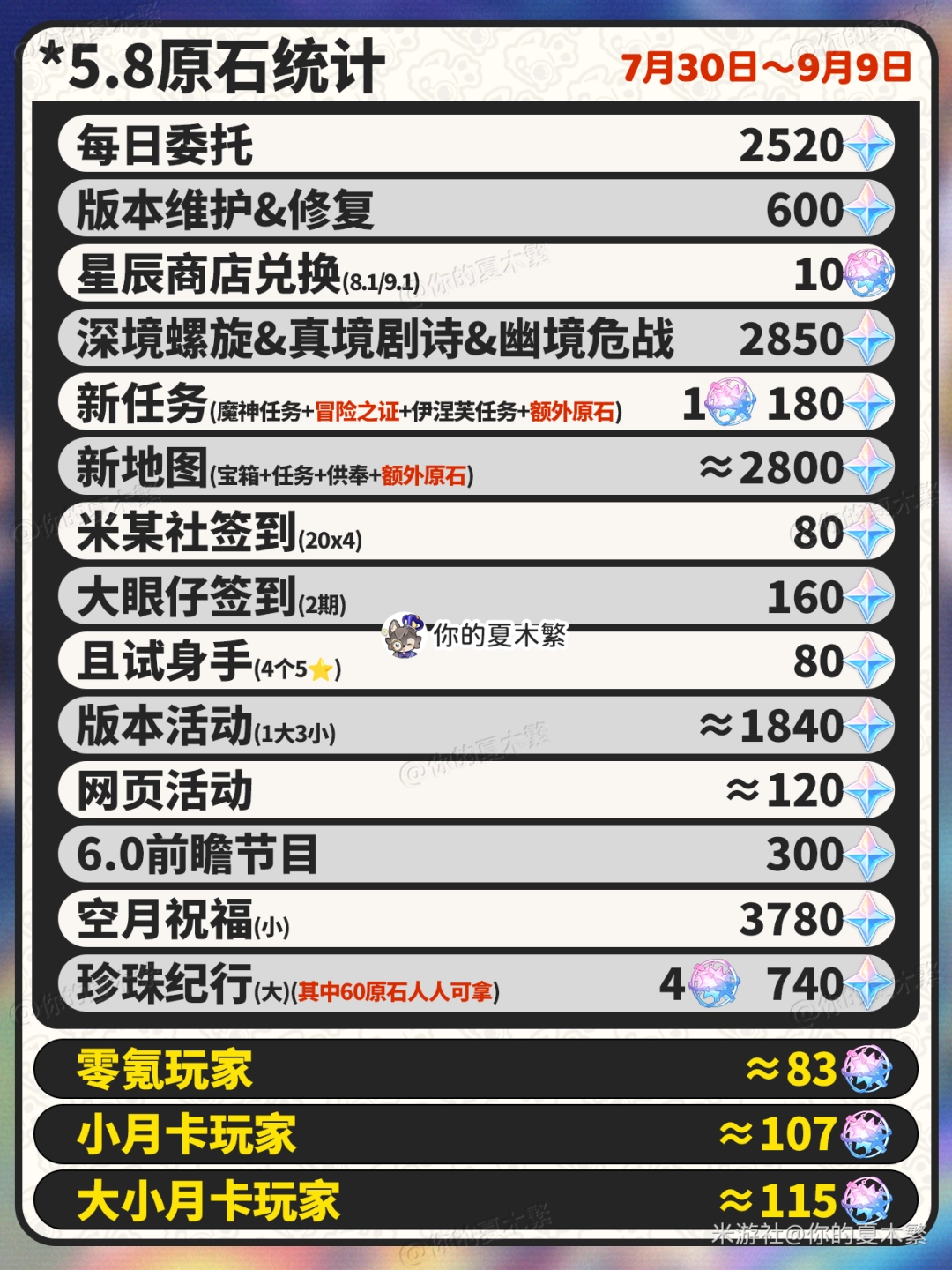 原神5.8原石汇总【5.8】上/下蝂夲原石统计