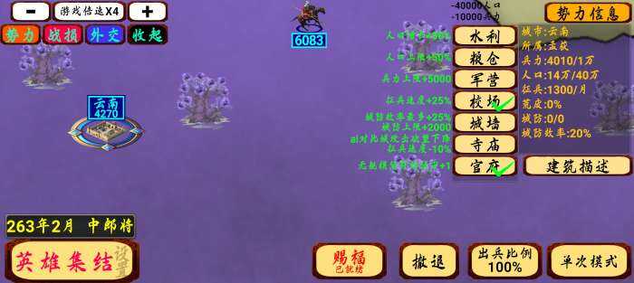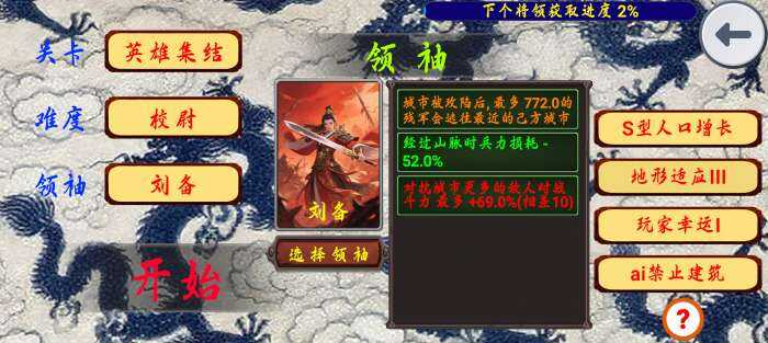 之前版本ai在地盘很大时有时会往返乱跑,现在超过10个城的Ai会有(huiyou)一个主攻方向,会源源不断地向这个方向调兵直到碾平敌人。如果你不想太早成为目标可以打开玩家(wanjia)幸运。