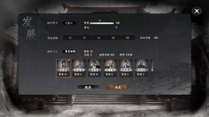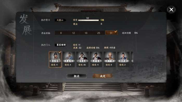 安定度可以建造镇安殿派遣门人完成任务增加,安定度过低门派弟子会叛逃