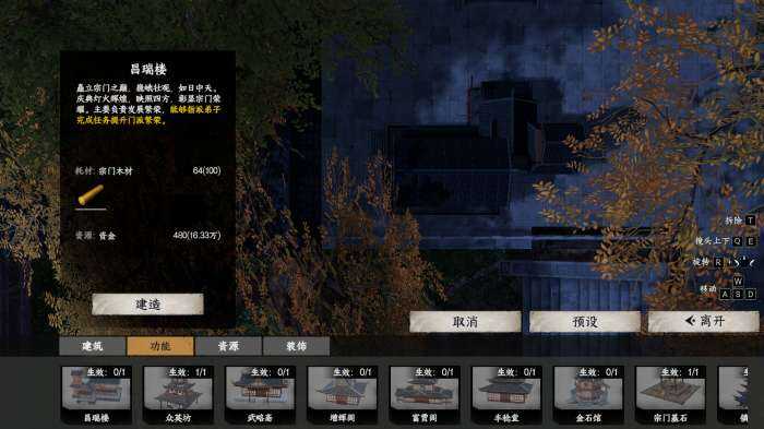 繁荣度可以建造昌瑞楼派遣门人完成任务增加