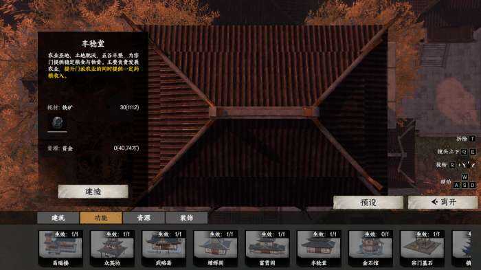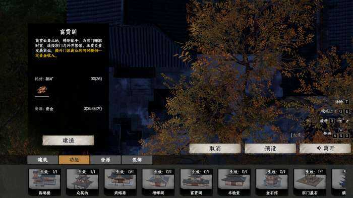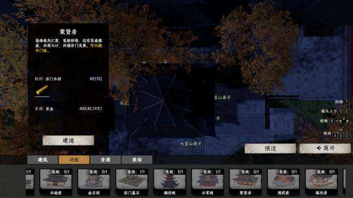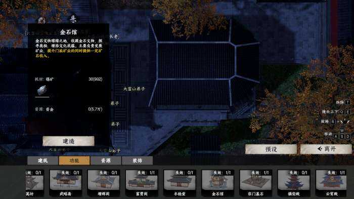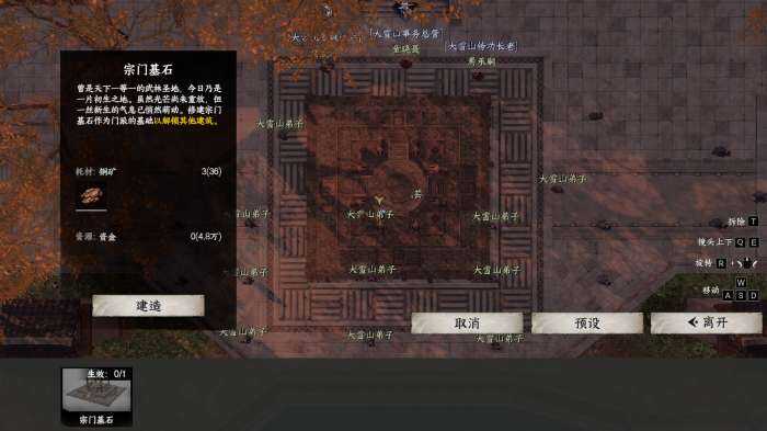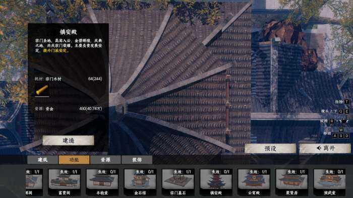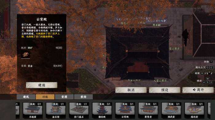 茬姙意位置放置宗门大殿后解锁后续建筑