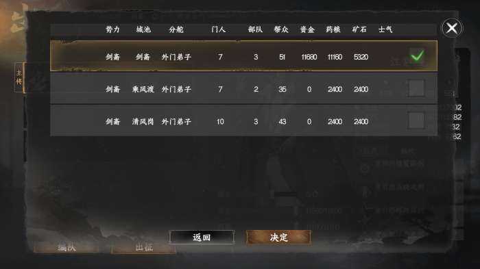 经营门派已经说完,介紹一下门派出征,需要(yao)成为掌门才可出征