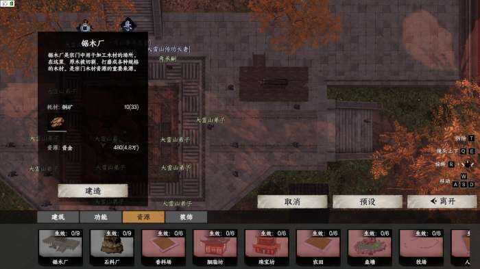 要致富先挖矿和砍树,获取宗门木材和宗门石料,是建造宗门建筑必不可少的资源,分别建造9个