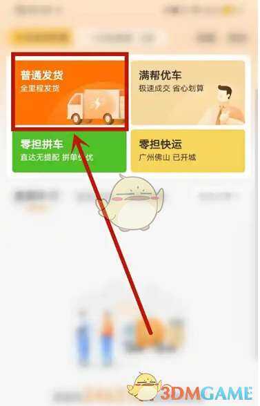 1、运满满货主app页(ye)面(mian),點击選擇普通(putong)发货。
