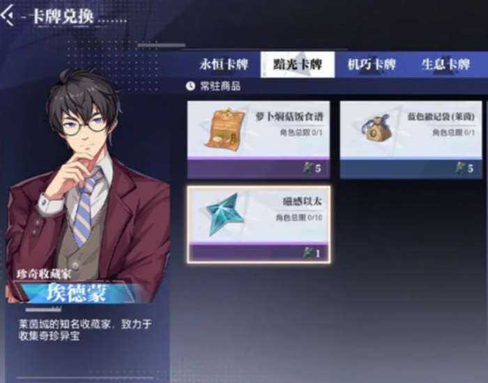 在挑(tiao)战(zhan)过程中,除了装备零件,还可能得到卡牌类道具。这些卡牌本身不能直接用于装备打造,但可以前往莱茵城寻找NPC爱德蒙进行兑换。通过卡牌可换取以太,这是一种在晶核中极为重要的打造资源。以太分为多种类型,包括基础以太、瓷感以太、极光以太和异构以太,不同等级的装备需要消耗不同种类的以太。建议用户将暂时无用的卡牌及时(shi)兑换为以太并妥善保存(save),以便后(hou)续使用。