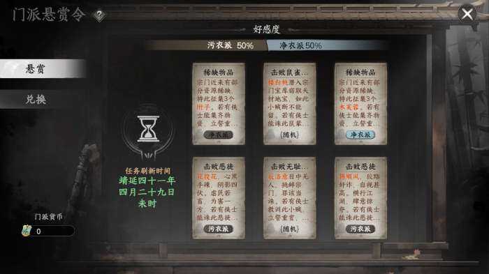 丐门的悬赏任務不同于其他(ta)门派,多加了净衣派和污衣派,接取做完有写倆個派系的悬赏后会增加对应好感度