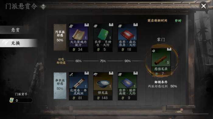 好感对净衣派和污衣派单个派系达到(achieve)一定程度能够解锁兑换派系道具