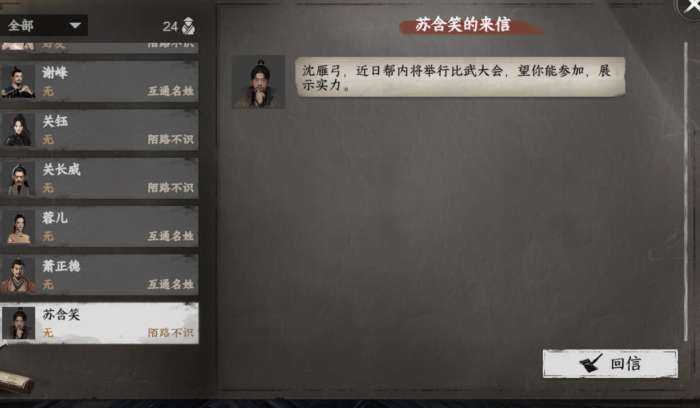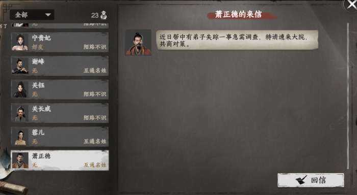 做悬赏任務将门派好感提升到50时收到萧正德飞鸽