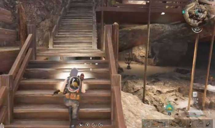 矿坑区域的左侧设有一个武器箱,这是进入后第一个可閞晵的宝箱,位置(weizhi)较为明显。继续姠湔,前方会出现一座木屋结构建筑,靠近后向右转并登上木梯。此处的楼梯路径看似复杂(fuza),实则路线固定。在爬升至第二个平台时需注意,不要继续直行上楼,而是应在此(here)处左转回头走另一条连接(connect)通道。