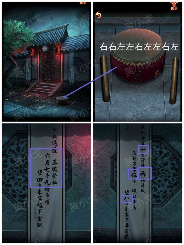 2.点击地上的鼓,根据幡上的线索,按顺序击鼓。打开门