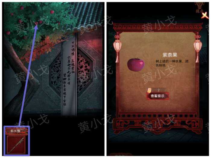 4.点击果树,用【纸长戟】够下树上的【紫柰果】