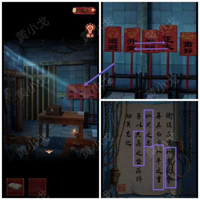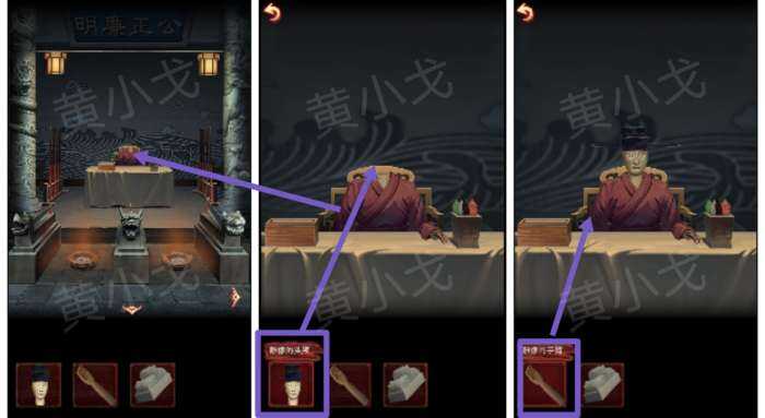 31.点击左侧的狗头铡刀,放入【狗眼】,根据柱子上的图案(an),调整铡刀的角度-平
