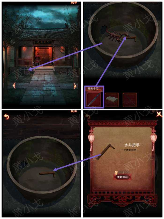 22.点击水缸,用【锋利小刀】切掉蝎子的腿,获得【水井把手】