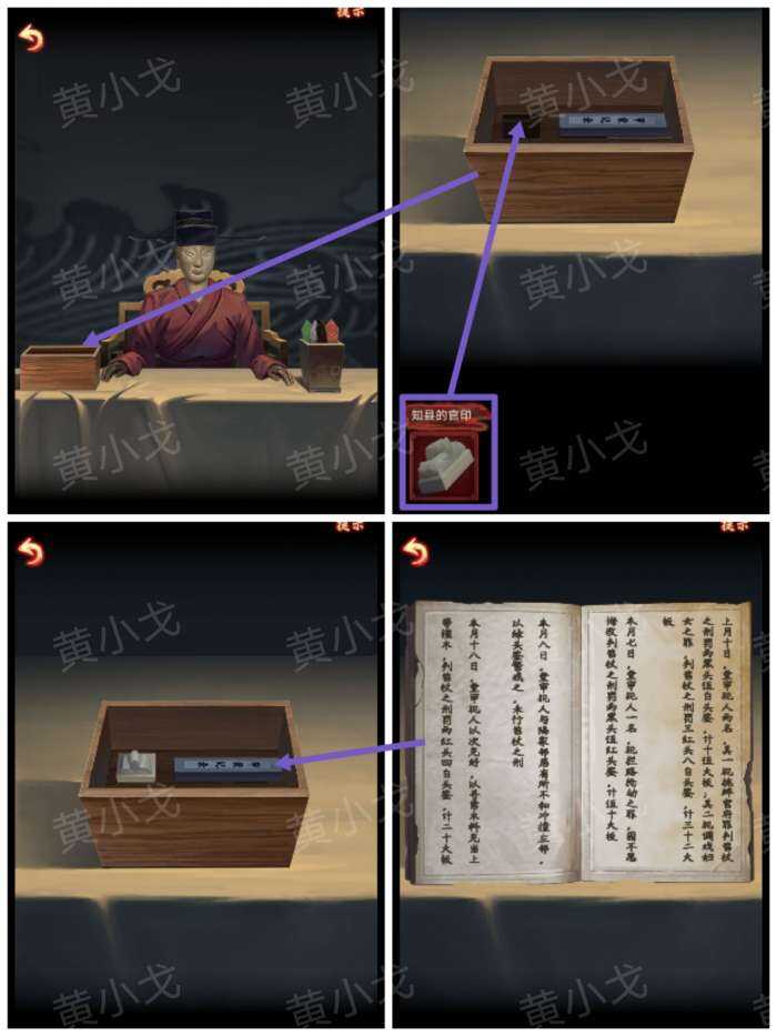27.打开盒子,把【知县的官印】放入凹槽处,查看《审案记录》