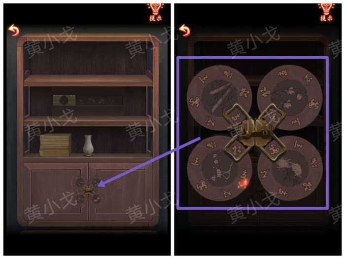 9.点击左侧柜子右边的抽屉,装上【抽屉拉环】,打开抽屉,获得【印章】