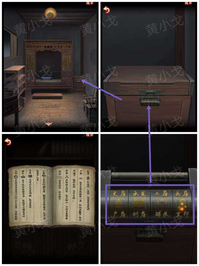 箱子上的提示(hint):吏房+户房、承发+刑房、工房+铺长、兵房+直印