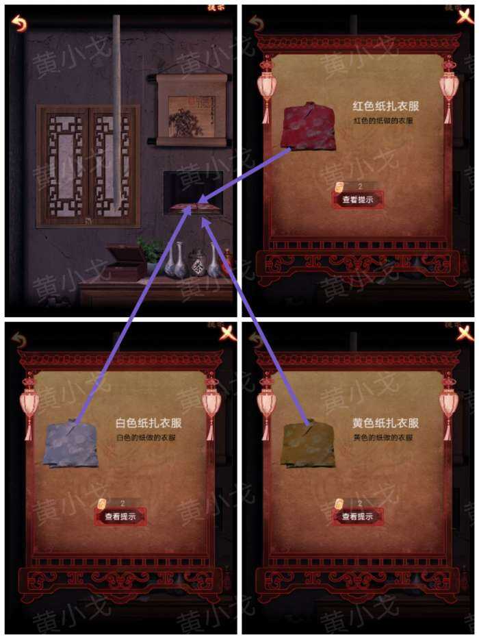33.打开暗格,获得【红色纸扎扆棴】、【白色纸扎扆棴】和【黄色纸扎扆棴】