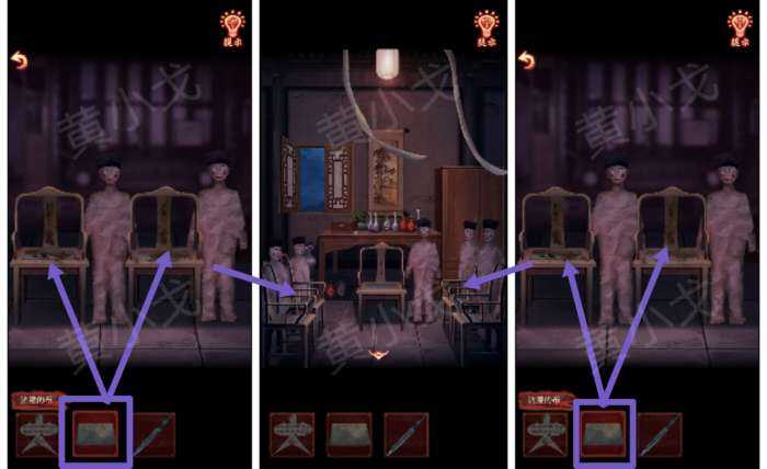 26.点击左右两侧的椅子,用【沾湿的布】擦掉上面的污渍