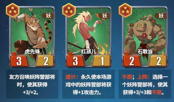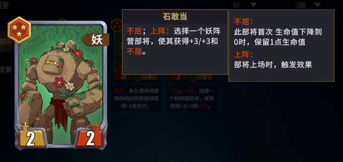 前期:虎先锋战斗中触发的效果不是永久,红孩儿成长效果一(yi)般(ban),石敢当是阵容唯一永久上不屈的牌,后期必拿除非已经加满了。