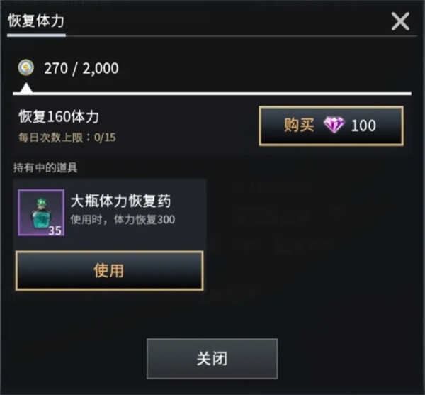 1.用100紫钻直接补充,每次补充160体力(每日上限15次)