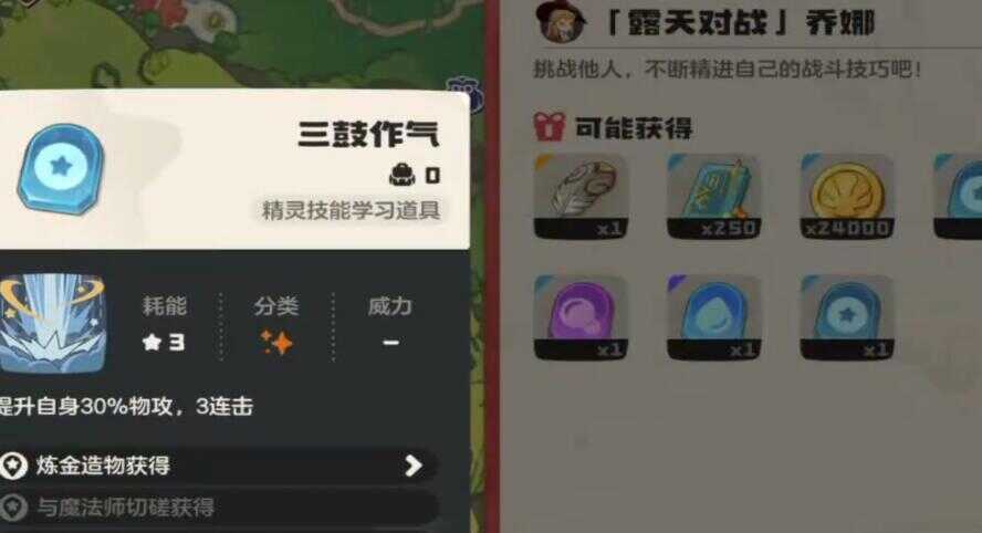 洛克王国:世界乔娜对战攻略玩家在对战乔娜时需要痽備三鼓作气这个技能,因为这个技能能够(gou)有效的提升物(wu)理攻击(gongji),并且在施展的时候可以直接触(chu)发(fa)三连击,而玩家如果想要战胜乔娜,这个是(shi)不(bu)可多得的。但玩家需要注意,如果想要获得三鼓作气,就需要来到晨曦山魔力之源。其次玩家还需要痽備乘胜追击,这个技能一旦释放之后,能够(gou)有效的提高连击的次数,他如果跟三鼓作气搭配在一起,此时玩家的实力是非常强悍的,而玩家如果想要获得乘胜追击,就需要去找史密斯挑战,在挑战的时候可能会面临一系列的问题,建议玩家先抢占先机,然后在露天对决斗萨萨巫的时候就能够(gou)获得它。