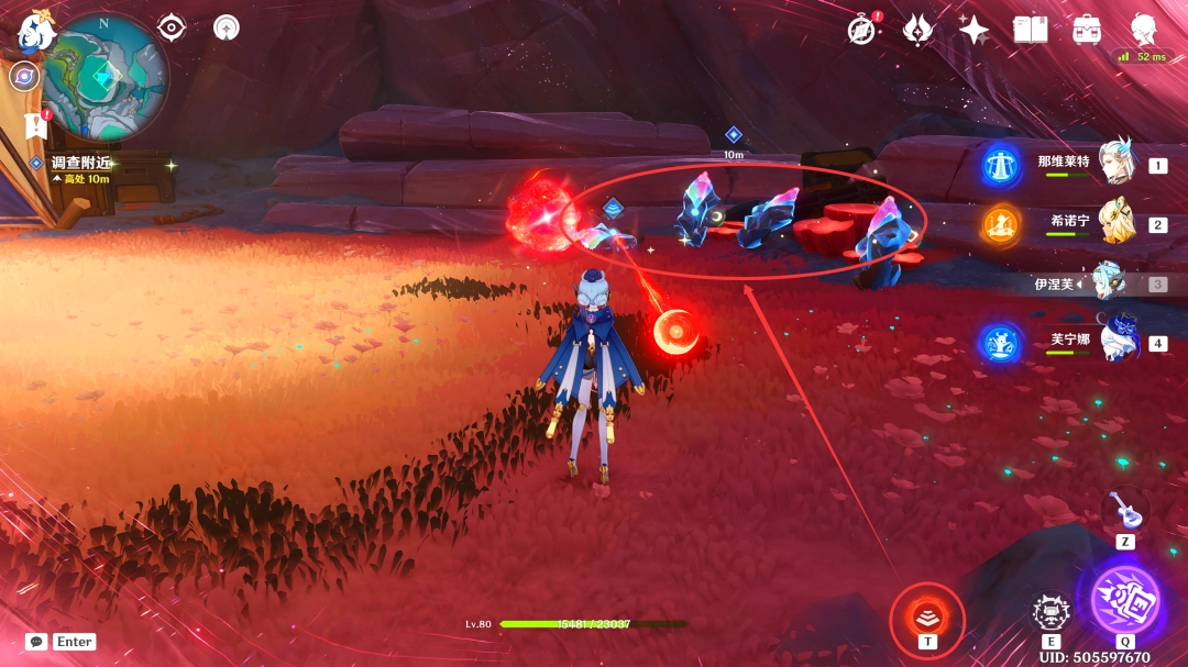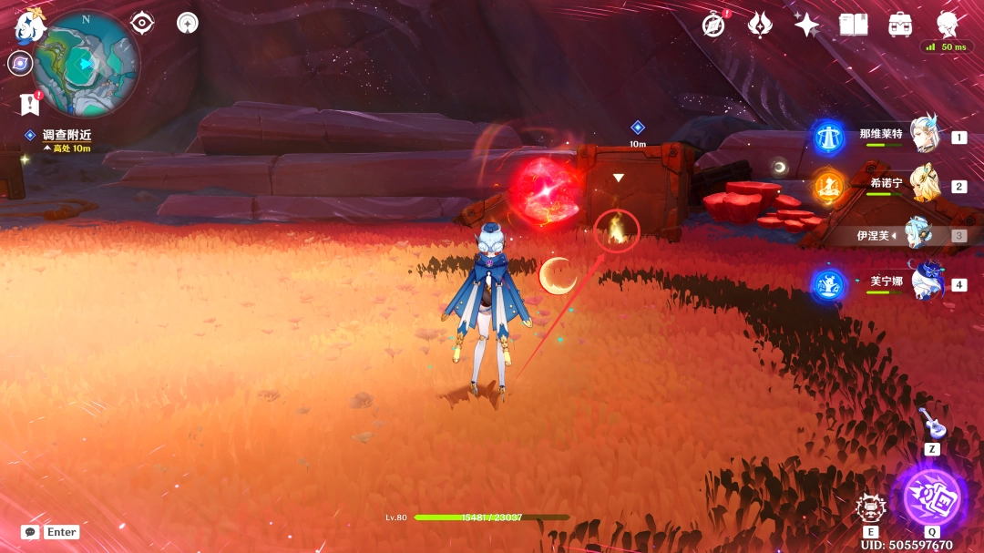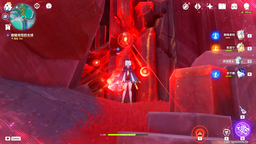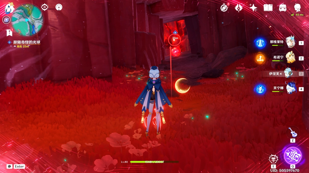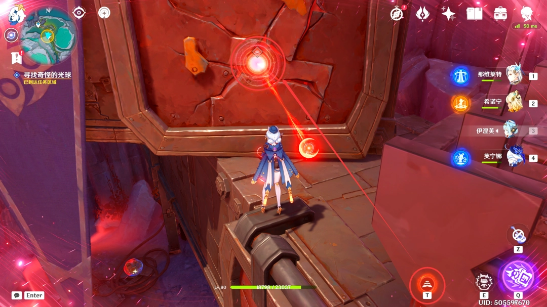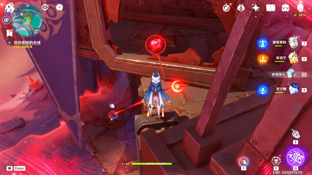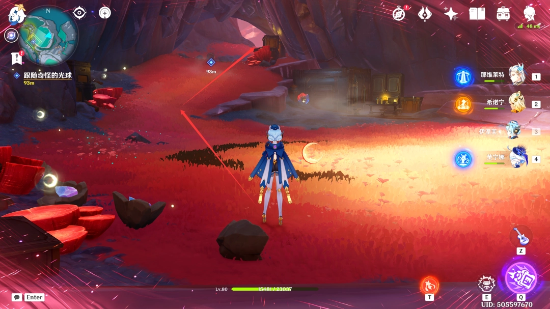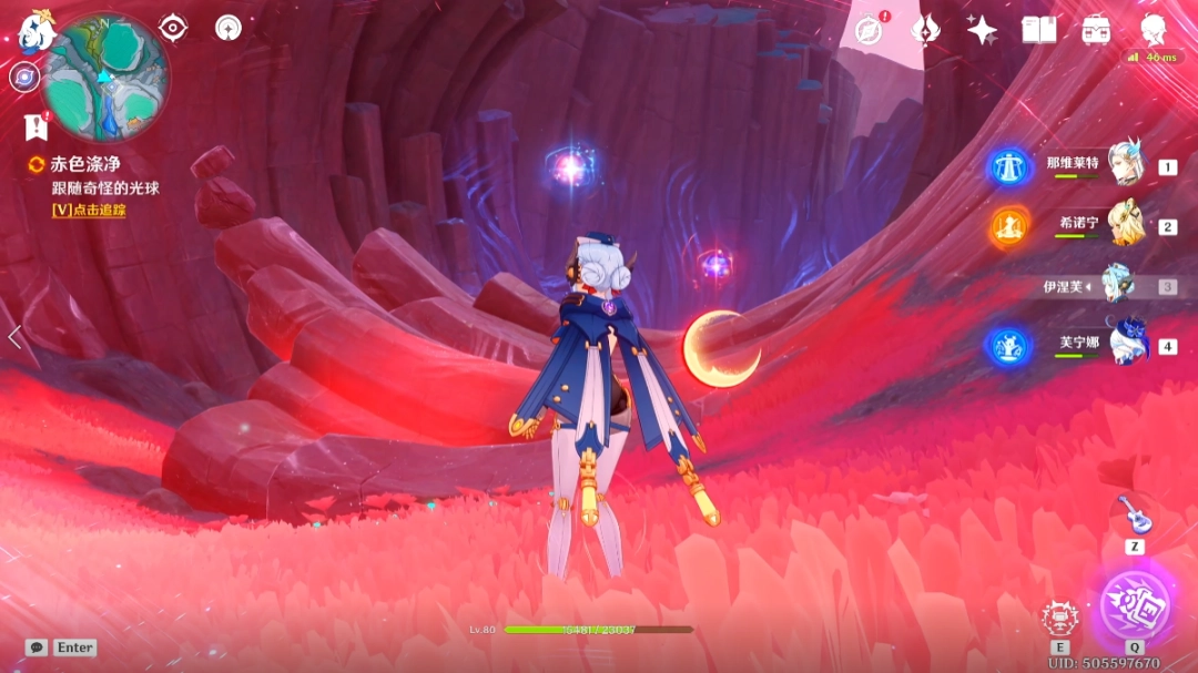 收集完「虹滴晶」后,我们跟随着红色(red)光球前进