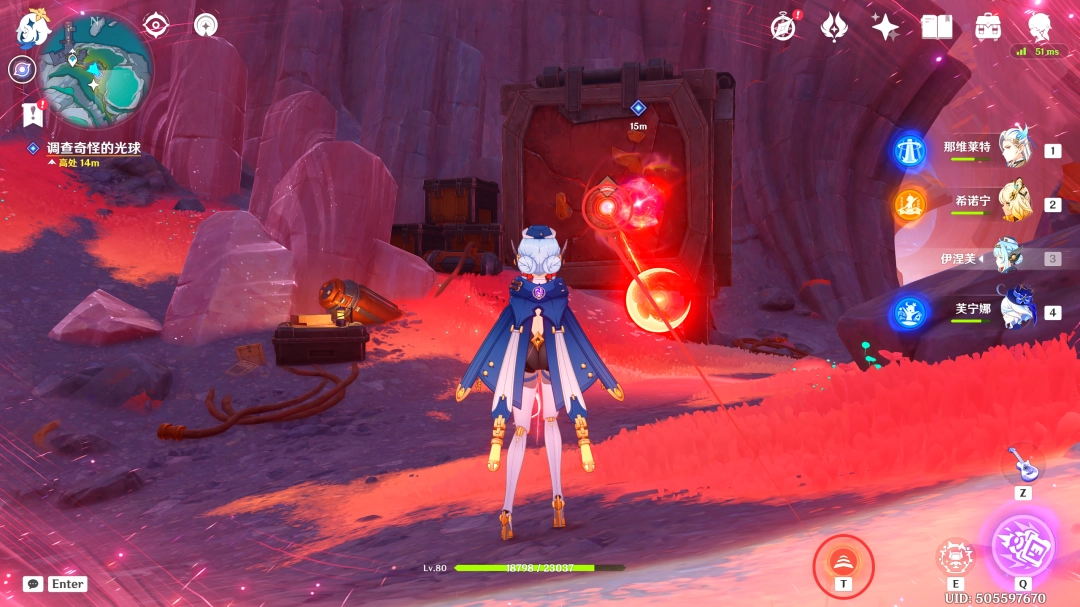 之后我们靠近红色(red)光球,即可触(chu)发(fa)动画(donghua)(里面有一个普通的宝箱可以顺手开启)