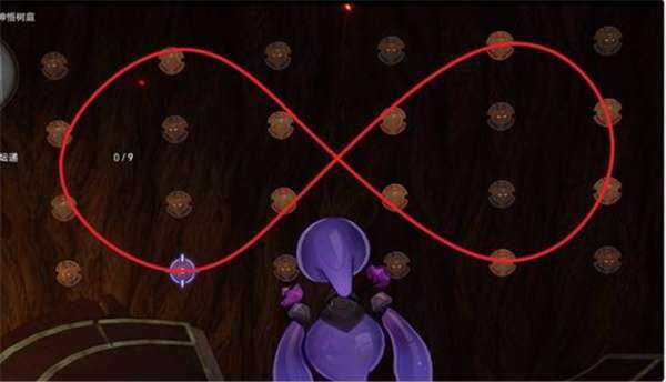 4、对着在此的盾牌射击(sheji)一下就能使其变红,再次射击(sheji)则是变蓝。参考下图射击(sheji)盾牌,用红色盾牌拼出一款无限符号,即可完成解密