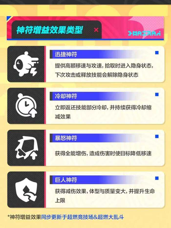 神符争夺区域是蛋仔们争夺增益效(xiao)果的关键区域。每隔一段时间,神符争夺区域会刷新出随机类型的神符,蛋仔拾取后能够获得持续一定时间的增益效(xiao)果。小地图中会实时显示神符刷新时间,蛋仔们需要拼“脚”速时间到!争夺神符的增益。