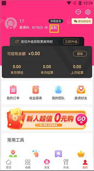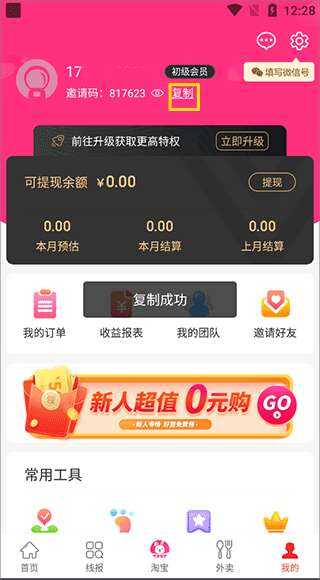 白白优选app邀请码在哪获得打开软件,在“我的”一栏中找到并点击黄色方框内的“复制”按键,当屏幕中出现“复制成功”字样时,了解更多精彩快来看看下面的内容吧。