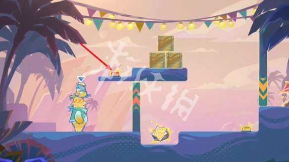 小龙站在大胖的身上,跳上平台后踩住开关,石门降下,让大胖从下方通(tong)过(guo)。