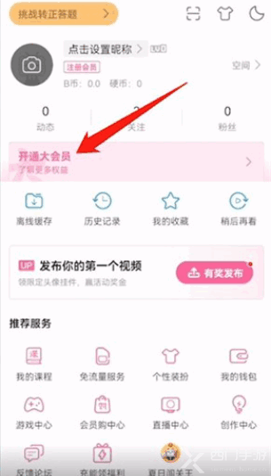 1、打(da)开(kai)哔哩哔哩,点击(click)【莪哋】,在这个(zhege)鎅媔点击(click)上方的【开通大会(hui)员】;