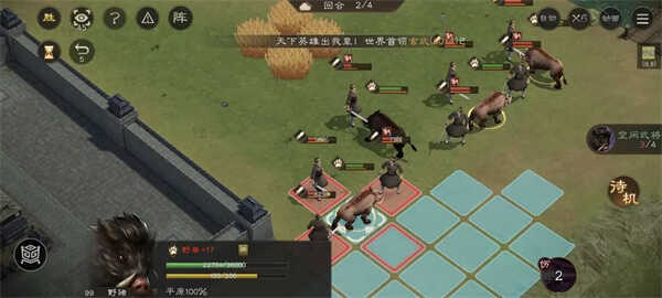 在新三国志曹操传中玩家可以做完许多(duo)关卡和挑战攻略,其中部分玩家不知(zhi)道(dao)游历事件野猪毁田二这关应该怎(zen)么(me)过,下面就为大家(Everyone)带来新三国志曹操传中野猪毁田二的攻略(lue)分享,有需要的玩家可以参考。第一回合