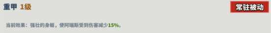 特点:被动技能,减伤能力让阿瑞斯在团队中可以承担更多前排职责,吸引敌方火力,是一个典型的坦克特质技能。