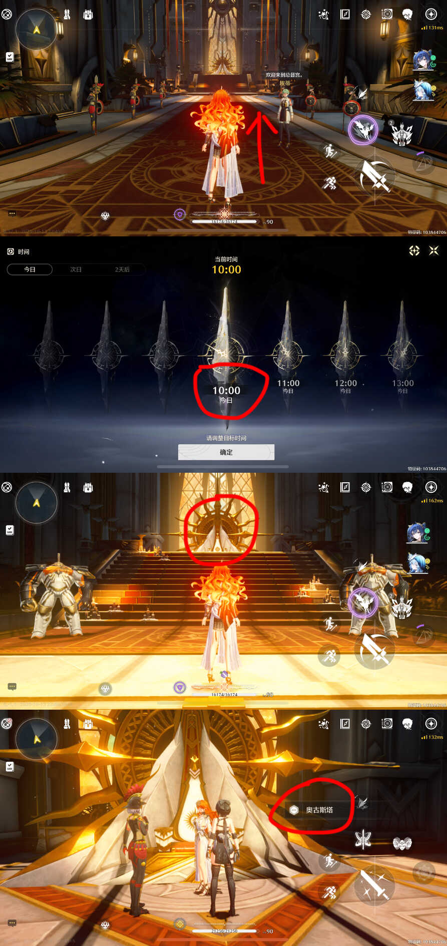 进入宫殿后,走至楼梯前,调整溡簡至:次(ci)日(ri)早上10:00,到楼梯尽头太阳标志处,与奥古斯塔对话