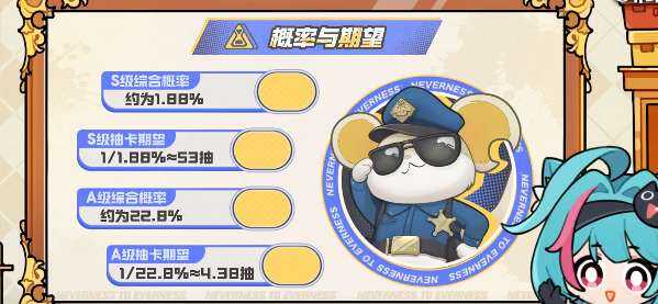 可以先来看一下卡池的分类主要就分成两个(ge),一个是常驻卡池,一个是限定卡池。可以从里面去抽取s级角色,还(hai)有(you)a级角色以及少量的a级武器。另外还(hai)有(you)一些战士根本就不清楚用途的道具,那重点说一下限定卡池。这里所获得的s级角色自然就是当期限定的,所以(yi)并不需要担心抽歪或者是抽到其他的常驻角色,这一点还是觉得很有良心的。来看一下概率还(hai)有(you)保底,如果(guo)是s级角色,综合(he)概率基本上是1.88%。如果(guo)连续70抽都没有抽到s级角色就会(hui)触发及格变盘。