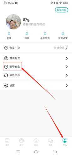 1、进入APP后,首先(shouxian)点击右下角“个人”,再点击页面狆哋“账号安全”;