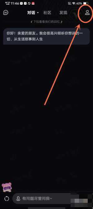 1、打(da)开(kai)文心一言APP首页(shouye),点击(ji)右上角“人像”图标(tubiao)。