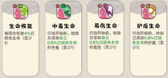 (1)回合类buff技能,艮琚损失生命(ming)添加中毒、易伤、护盾、生命(ming)。一级旣妸,可凑流派经验(jingyan)。
