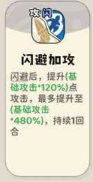 (3)触发提升属性类技能,闪避后提升攻击。一般需(xu)要(yao)搭配攻击流派使用。