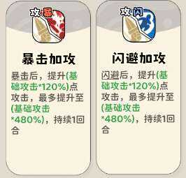 (3)触发提升属性类技能,暴击或闪避后提升攻击。一般需(xu)要(yao)搭配暴击或闪避流派使用。