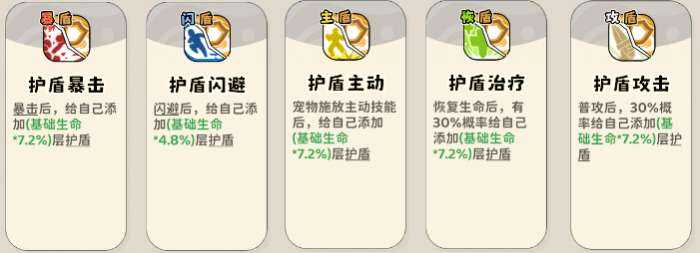 (1)触发类添盾技能,普攻、暴击、闪避、恢(hui)复(fu)、宠物释放主动技能后添加护盾,一级旣妸。