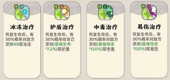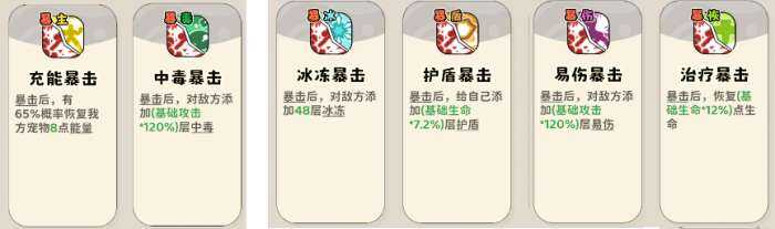 (1)触发类buff技能,暴击后增加冰冻、易伤、恢(hui)复(fu)、中毒、护盾、概率增加能量。主暴击流派回能点满,其他流派点一星旣妸。