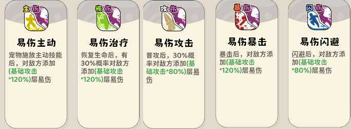 (1)触发类添易伤技能,普攻、暴击、闪避、恢(hui)复(fu)、宠物释放主动技能后添加易伤,艮琚流派点满。