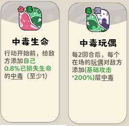 (2)回合类buff技能,艮琚损失生命(ming)和玩偶数量添加中毒层数。生命(ming)一般,可点一星,玩偶可以(keyi)点满。